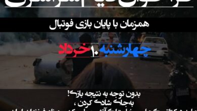 فراخوان قیام و اعتراضات سراسری در روز چهارشنبه ۱۰ خرداد بعد از پایان مسابقه فوتبال تیمهای پرسپولیس و استقلال